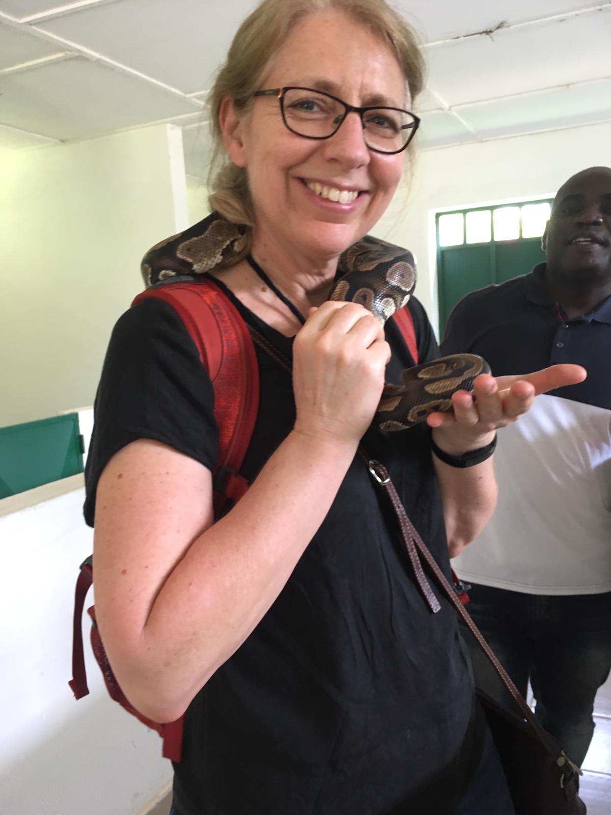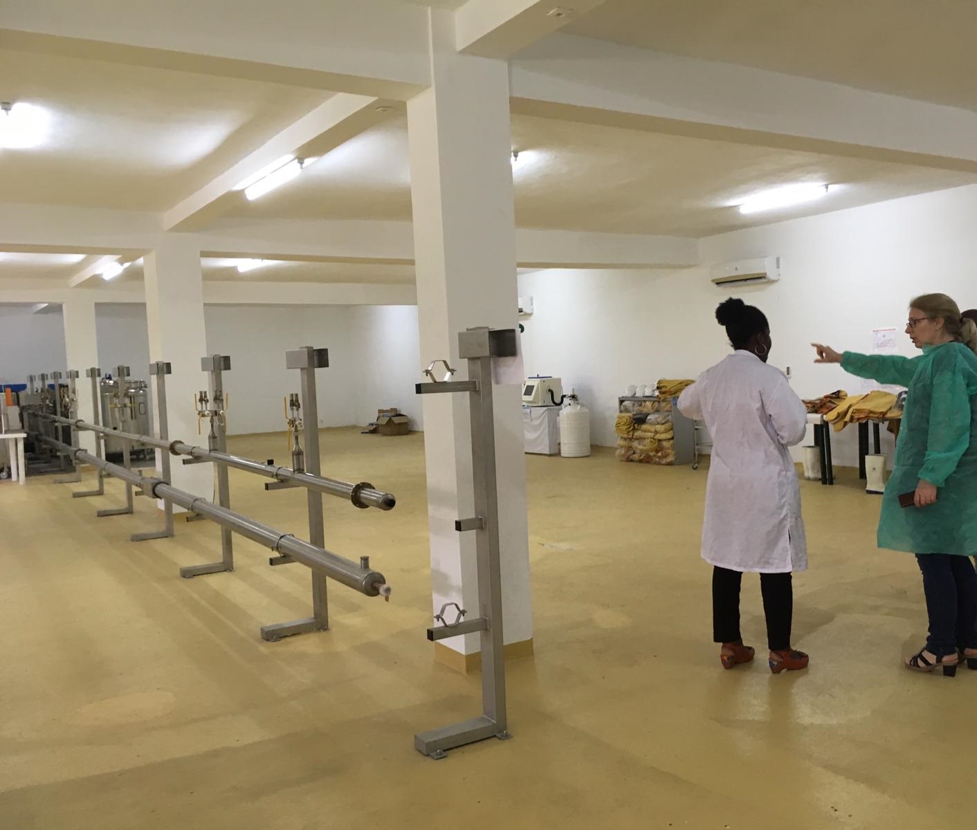While there, they not only learned about the procedures relating to their own data but also had the opportunity to visit the only biobank in West Africa, where samples from all over the region are stored. In addition to rooms full of industrial freezers, Carolina and Bonnie viewed nitrogen storage tanks, used to keep samples at nearly -200 degrees Celsius! They also saw cutting edge technology that allows the storage of DNA in tiny metal capsules with no liquid medium, and a venom research center focused on producing anti-venom treatments for local species of venomous wildlife.