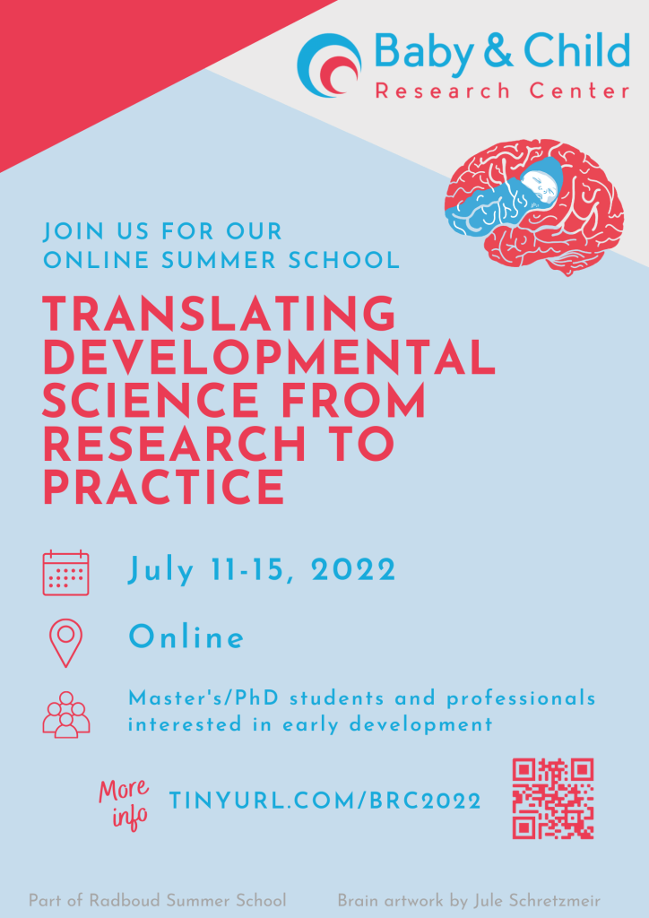 The Baby & Child Research Center Nijmegen is offering a one-week summer course as part of the Radboud Summer School. The course “Translating developmental science from research to practice” will take place from July 11 to 15.