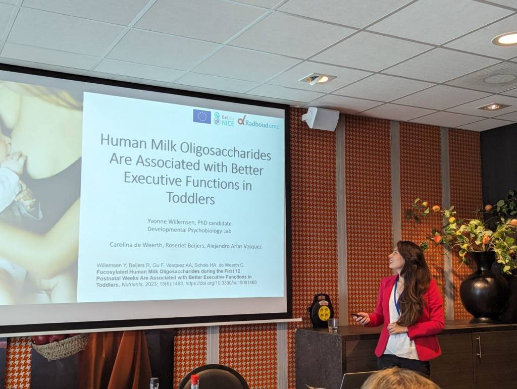 Yvonne presented her published paper on human milk oligosaccharides (HMOs) during the first 12 postnatal weeks and associations with executive functions in toddlers. Data from the BINGO study was used for this research. Specifically, this study found that higher levels of fucosylated HMOs predicted better executive functions in toddlers.